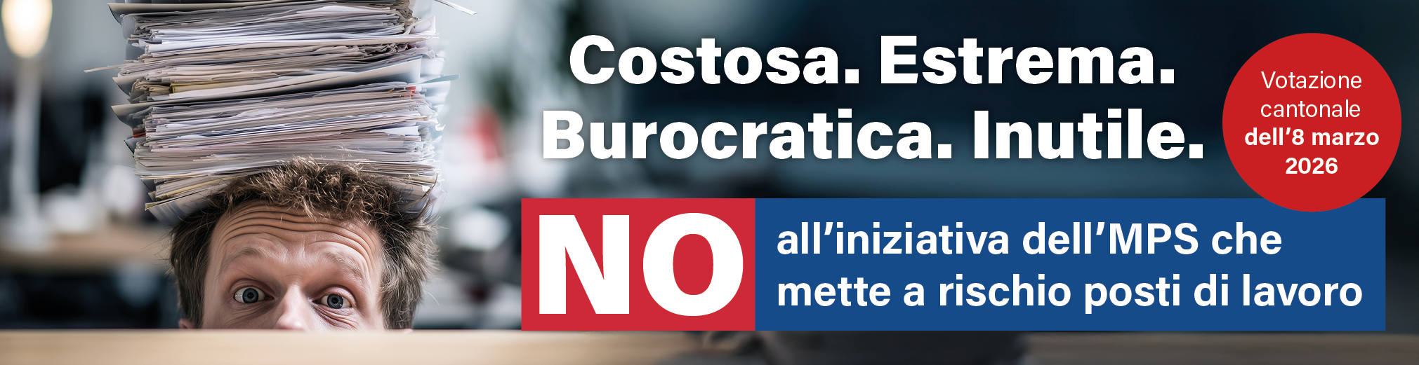 L’8 marzo voteremo sull’iniziativa antidumping del movimento di estrema sinistra MPS. Ma con il dumping non c’entra nulla. Chiede che tutti i datori di lavoro notifichino i dati di tutti i nostri contratti di lavoro al momento della firma e pure della disdetta ad un nuovo e gigante ufficio cantonale. In un anno sono 80’000! E, attenzione, occorre notificare tutti gli oltre 220’000 contratti di lavoro in essere ad inizio di ogni anno. Per questo sono necessari almeno 160 nuovi funzionari. I partner sociali, che hanno un ruolo fondamentale nel controllo del mercato del lavoro insieme all’Ispettorato del lavoro, verrebbero esclusi.